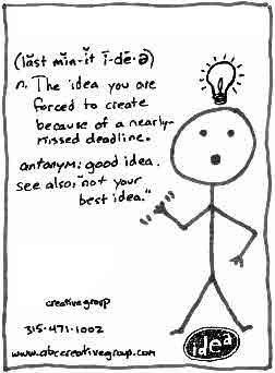 Enter Idea Guy, a stick character born to illustrate the common consequences of these ideation situations. Confusion, regret and frustration were common themes of these scenes. Idea Guy became an ABC mascot of sorts when we began incorporating him into agency marketing materials.