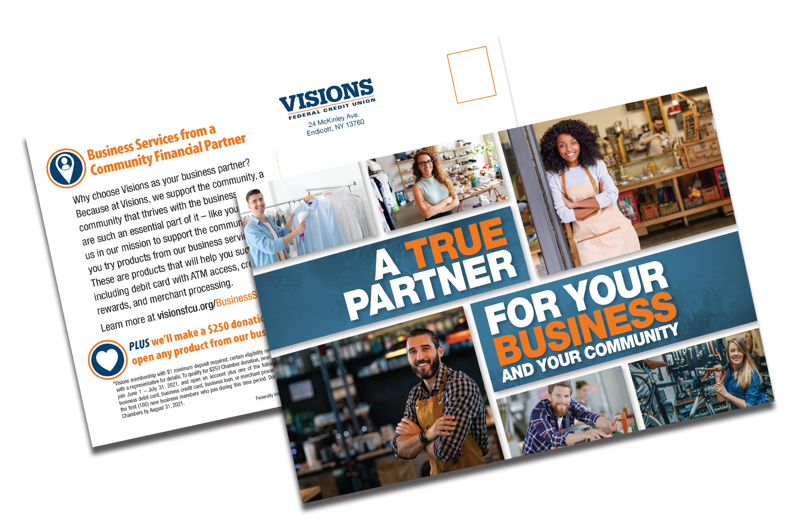 Another ABC-created campaign won in the “Business Development Efforts” category. The campaign pushed Visions Business Services Suite in a unique way that included mailings targeted at small business owners. They received direct mail at work and at home, each with their own messaging. As an incentive for signups, Visions made donations to local Chambers of Commerce for each account opened. The mailings and incentive led to 163 new accounts, a 24 percent increase over the previous year.