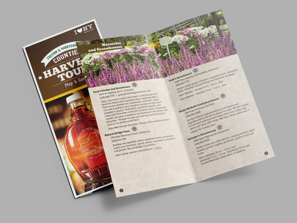 While we were at it, the creative team also reimagined the Fulton-Montgomery Harvest Tour guide. For that piece, we transformed a numbered map into a handy booklet.
