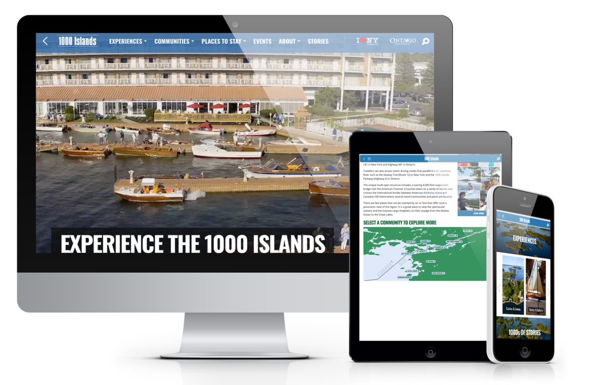 The home page messaging and CTA were crafted by ABC, which also developed assets that show the location of this unique region in relation to major U.S. and Canadian cities. An interactive map also allows visitors to navigate all the 1000 Island communities on both sides of the border.
