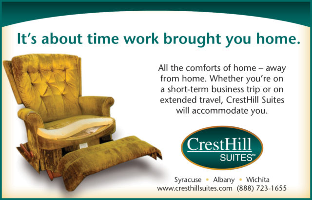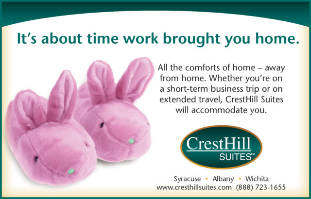 CrestHill Suites is an all-suite hotel with locations in Syracuse, Albany and Wichita along with several affiliate properties.