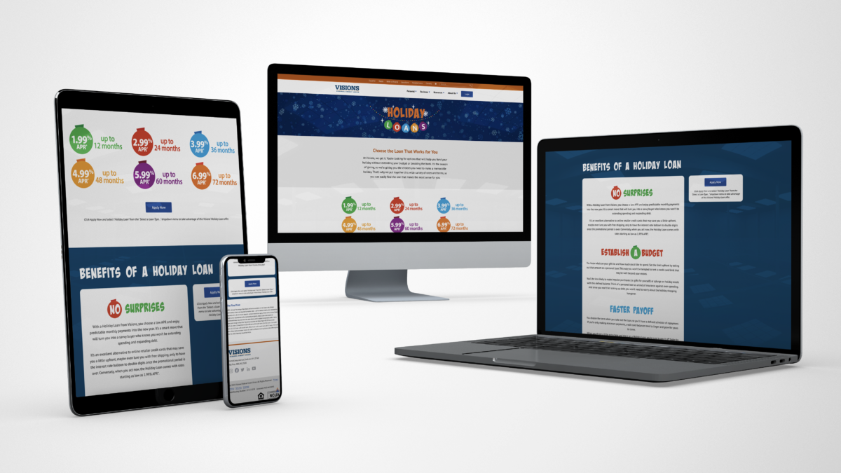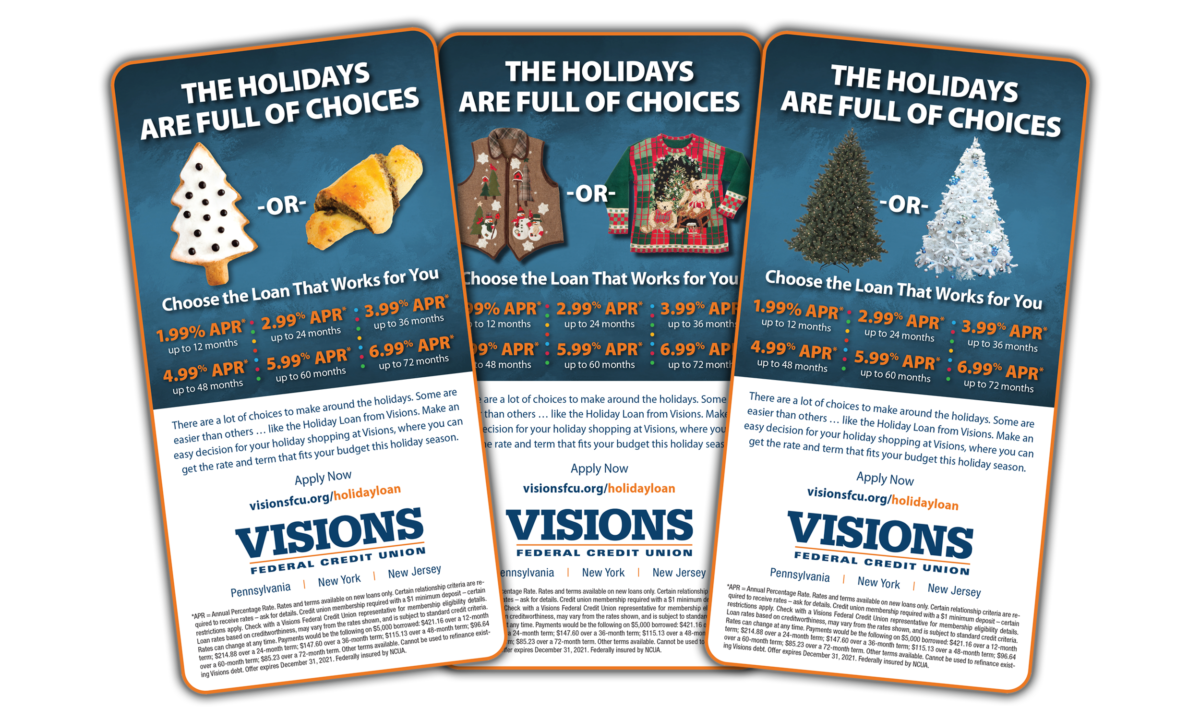 Visions, a federal credit union with more than 210,000 members in three states, has a “Holiday Loan” they offer annually. And each year, ABC Creative comes up with a fresh concept to continuously build on the previous campaign’s success.